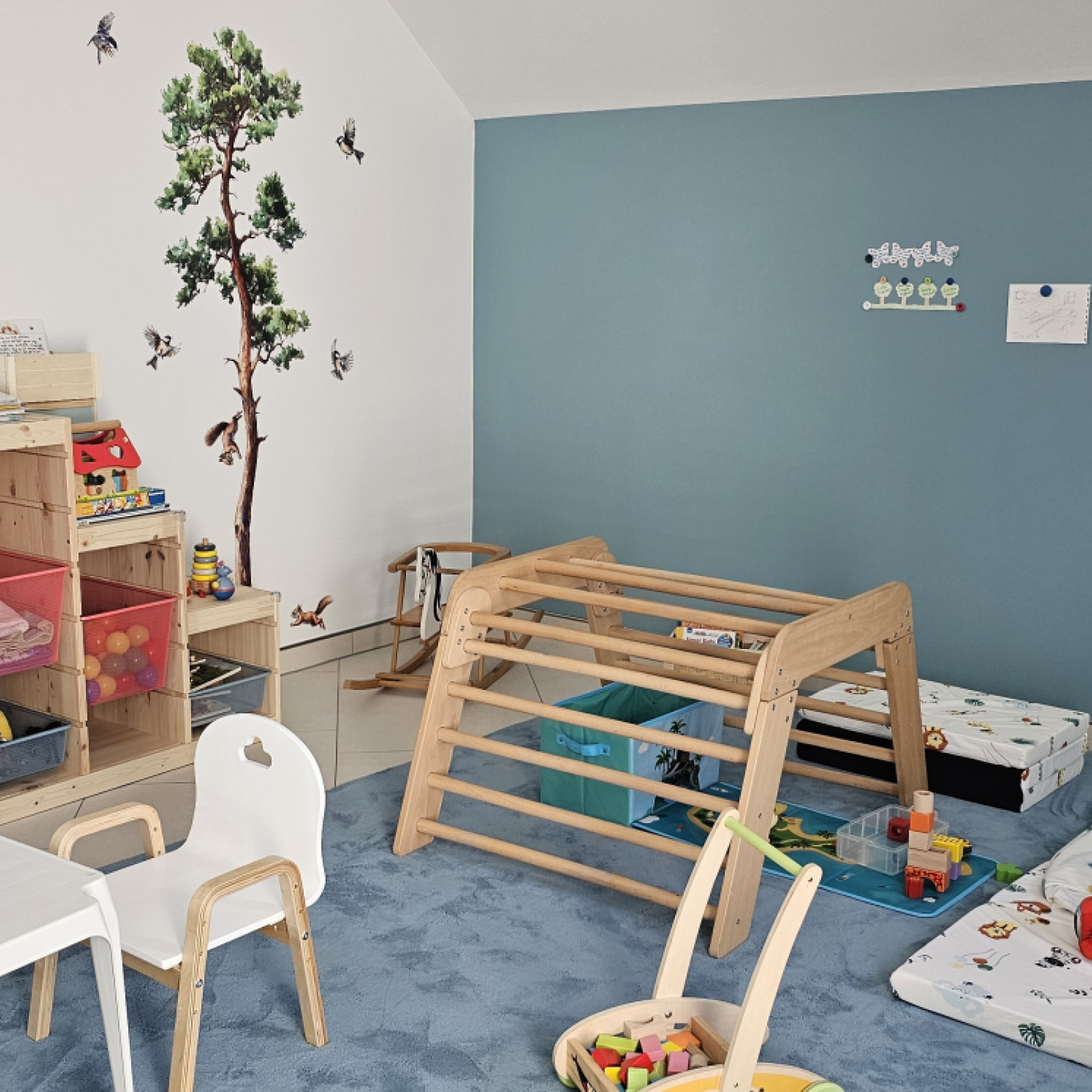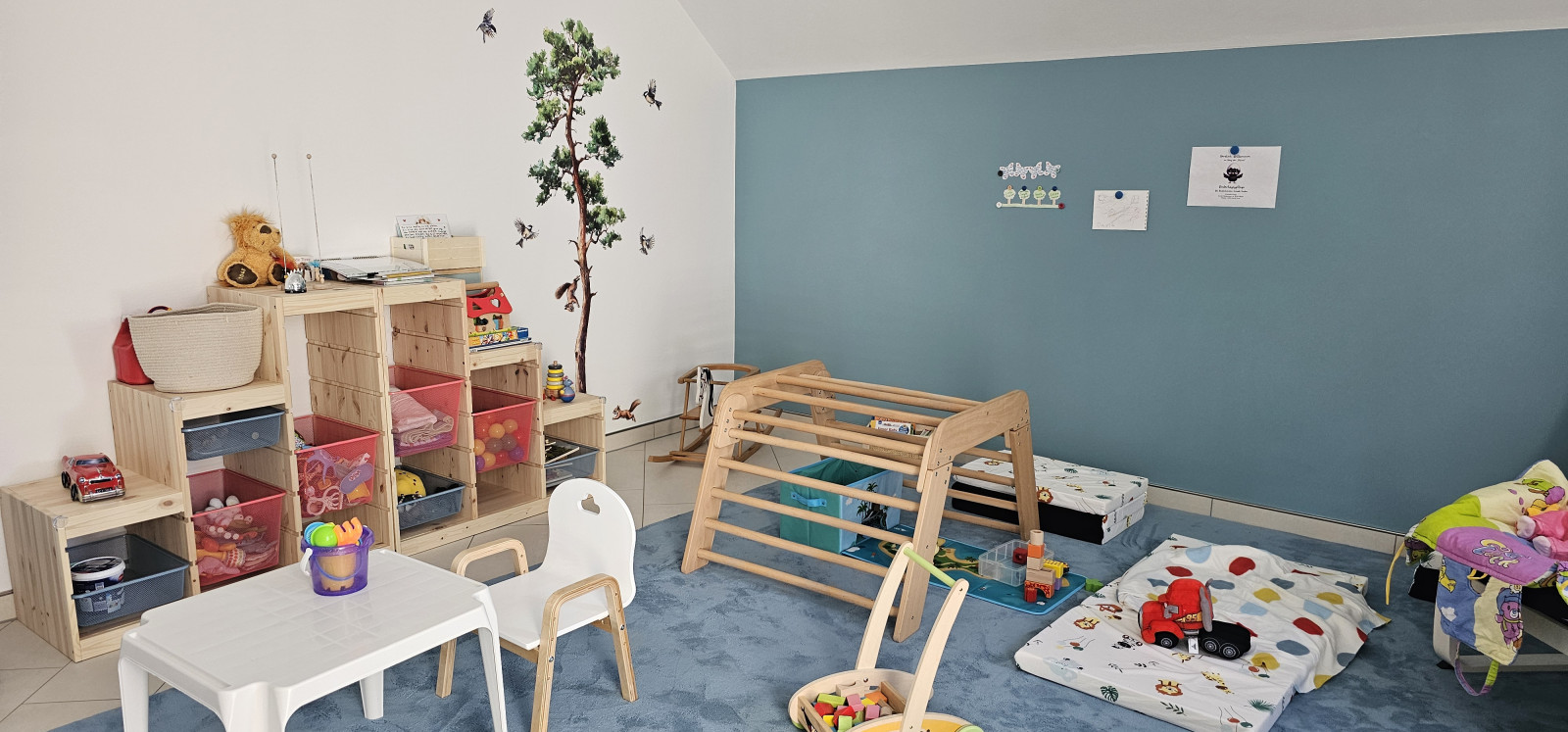 Meine Kindertagespflege befindet sich in Wörth, in einer ruhigen Straße, die von zwei Spielplätzen und einem nahegelegenen Wald umgeben ist. Ich lebe in einem Zweifamilienhaus gemeinsam mit meinen Schwiegereltern. Die Räumlichkeiten für die Kindertagespflege verfügen über einen Flur, in dem die Kinder ihre Kleidung und Schuhe aufhängen können. Zur Ausstattung gehören ein Badezimmer und eine Küche, in der die Mahlzeiten frisch zubereitet werden. Ein separates Spiel- und Ruhezimmer bietet den Kindern die Möglichkeit, sowohl zu spielen als auch zu schlafen. Außerdem gibt es eine Terrasse, die mit einem Sandkasten und verschiedenen Spielzeugen ausgestattet ist. Die Sicherheit im Haushalt hat für mich höchste Priorität. Daher sind Maßnahmen wie ein Gitterschutz vor der Treppe, Polster an scharfen Kanten und eine verschließbare Terrassentür vorhanden, um eine sichere Umgebung für die Kinder zu gewährleisten.